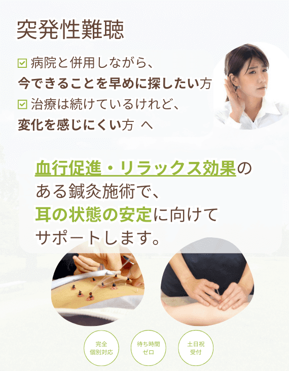 いろいろ調べていくなかで、鍼灸も突発性難聴改善に役立つのではと考え、当院に連絡。早い段階で始めたほうがいいというところから、薬の服用を続けながら当院での施術を開始。